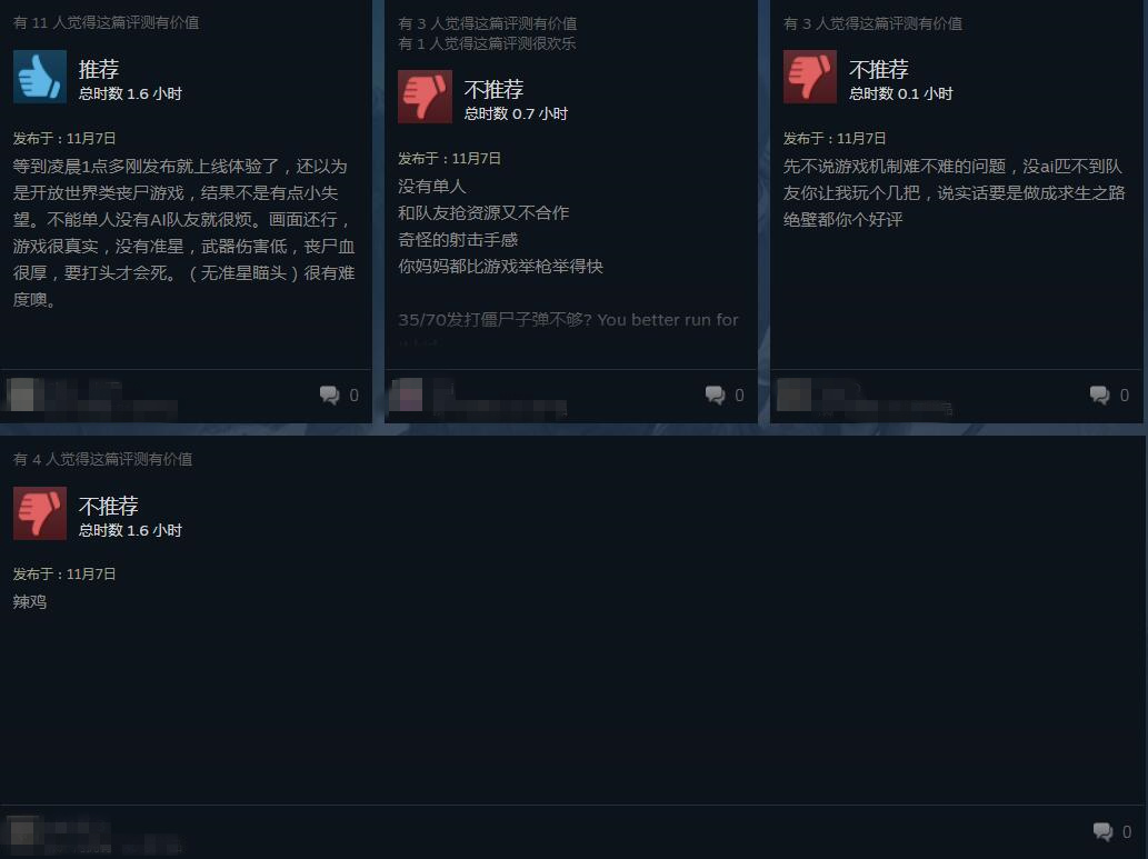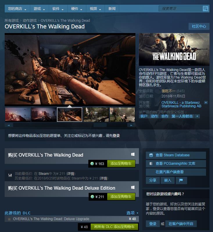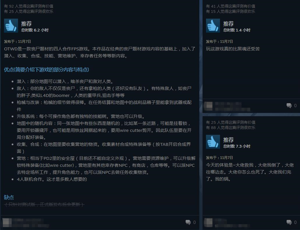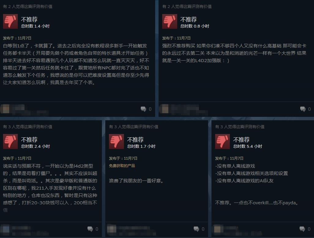 制作了《收获日》系列的星风工作室的最新作品《Overkill:行尸走肉》已于今日凌晨在Steam率先解锁。而从目前的口碑来看,大家对这款游戏的评价为“褒贬不一”,Steam好评率57%。本作是一款类似于《求生之路》的合作对抗的丧尸的游戏。从整体评论来看,玩家对于这种经典的合作玩法还是比较认可,游戏对于丧尸世界的还原也比较到位。但整款游戏难度较大,玩家无法获得L4D类似的爽快感,缺乏离线模式以及AI队友,游戏Bug多,穿模、断连等情况经常出现。希望制作组能够在日后对游戏进行持续的优化。本作也将于明年2月7日登陆主机平台。