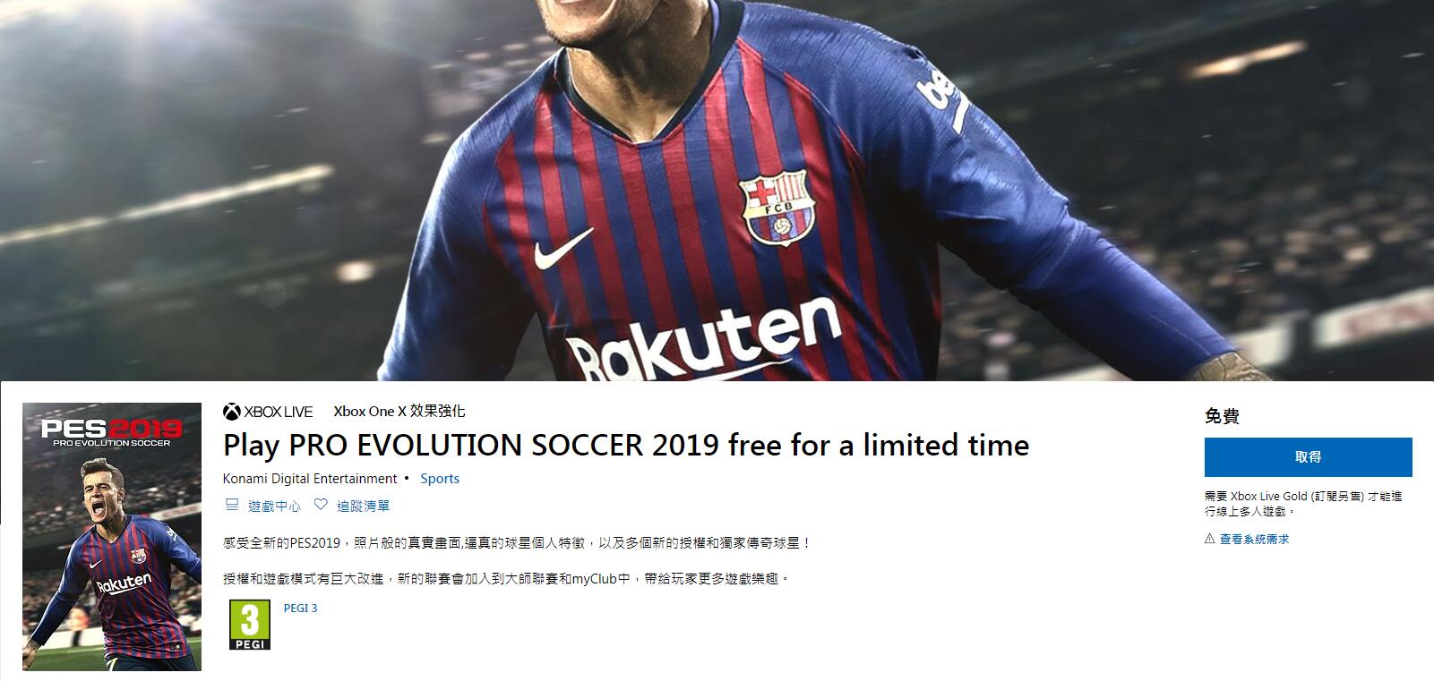 为了庆祝即将到来的X018粉丝大会,Xbox方面宣布《实况足球 2019》将和《绝地求生 大逃杀》一起开启限时免费游玩。除了刚刚的《绝地求生》之外,《实况足球 2019》的限免版本也已经在Xbox商城上架,大家搜索"PES2019"即可找到。