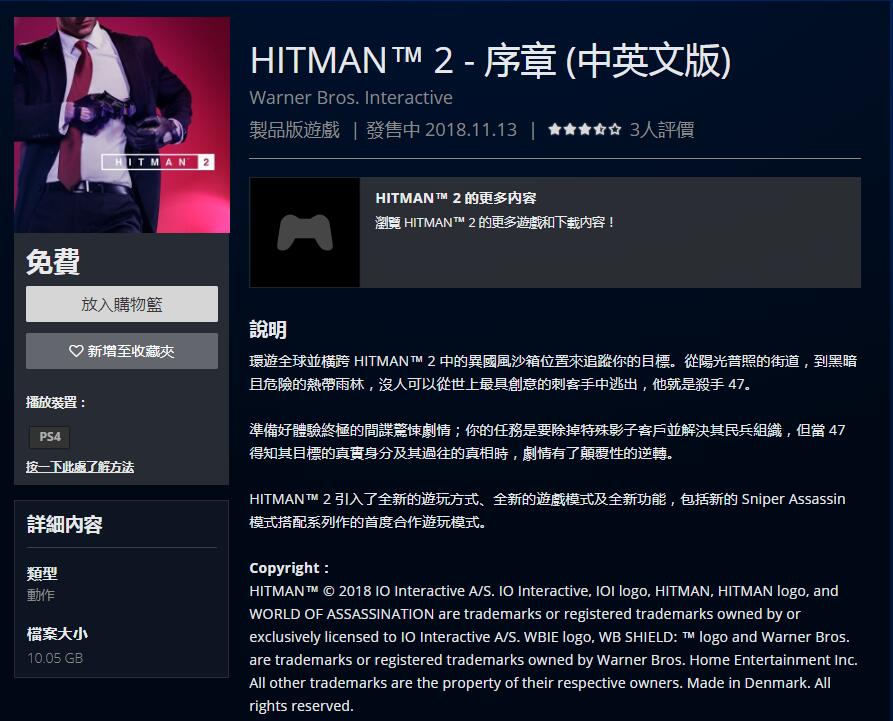 《杀手2》序章现已上架PSN港服商店,可免费领取