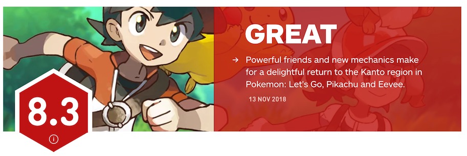 《精灵宝可梦 出发吧!皮卡丘/伊布》全球媒体评测解禁,IGN8.3、GS 8分