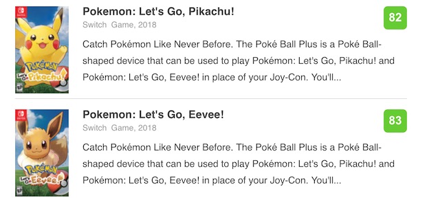 《精灵宝可梦 出发吧!皮卡丘/伊布》全球媒体评分解禁,IGN为本作给出了8.3的评价,Gamespot则给出8分(暂评分),目前《精灵宝可梦 出发吧!皮卡丘》版本metacritic均分82,16家媒体给出了分数,而《伊布》版本均分83,由18家媒体打出。IGN表示游戏采用全新技术后带来了全新的视觉及玩法,作为系列之中兼顾可爱与战力的人气角色皮卡丘和伊布可以在本作中学习更多招式,给玩家带来非常新鲜的体验。类似于《精灵宝可梦GO》的捕捉系统让收集过程变得轻松愉快令人沉迷,即使游戏在UI设计以及体感操作方面有一定的不足,但捕捉系统以及通关过后的挑战任务还是会让你停不下来!GS方面称赞了游戏的画面、配乐、捕捉系统以及整体体验,但抱怨了体感操作以及在线内容缺乏导致的游戏后期可玩内容有限的问题。