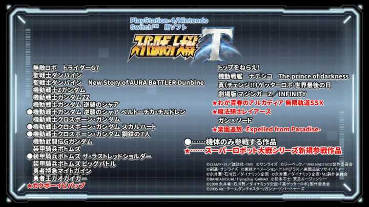 Bandai Namco公布了PS4/Switch《超级机器人大战T》中所有登场作品汇总。