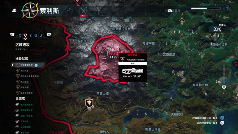 系列一脉相承的据点推进玩法在本作中得到了保留和改进,玩家只需要完成对应任务并拥有足够的混乱度(通过破坏场景累积),不需要把所有指定的建筑都破坏,就可以攻占地区推进前线,可惜的是单纯的前作玩法换皮和重复的任务目标无法承载游戏整个流程表现,特别是长时间连续游玩下这种感觉更为突出。