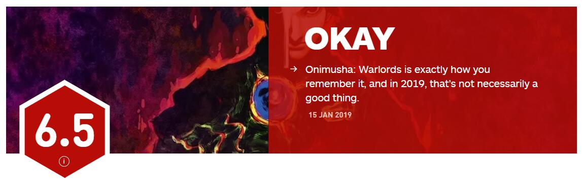 《鬼武者初代复刻版》获IGN 6.5分一般评价,初版的问题仍未解决且缺乏新内容