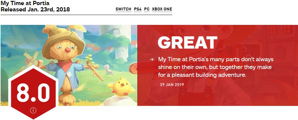 IGN今日为《波西亚时光》正式版给出了8.0分的优秀评价。评测编辑认为游戏在建造上乐趣十足。从采矿、驯化再到约会,你在游戏中有很多事情可以做,有许多非常有趣的内容等你去发现和探索。尽管游戏的一些方面存在着不足,但当这些内容都结合起来的时候,他们就会带来很多乐趣。期待游戏在后续的更新。《波西亚时光》并非在每个部分上都那么闪耀,但把这些内容都整合在一起,就带给人非常有意思的建造体验。目前游戏在WeGame平台上提供3小时的免费体验时间。今日游戏官方帕斯亚科技已经入驻二柄社区,大家有什么想对制作团队说的,或者有关于游戏方面想要了解的问题,都可以前往社区与官方积极互动,参与互动还有机会赢取《波西亚时光》的游戏激活码~