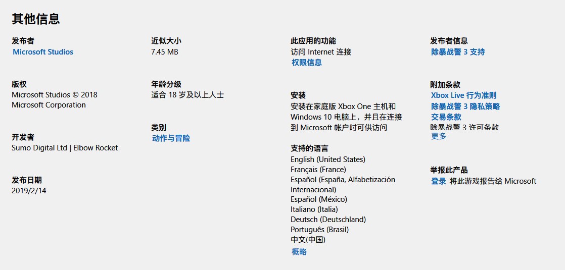 从今天上午开始,《除暴战警3》在Xbox平台和Win10平台都开启了预载通道,预购游戏和订阅了Xbox Game Pass服务的玩家都可以进行下载,并可以选择单独下载战役或者是联机模式,其中Xbox One版本多人和单人部分加起来大概20GB,但是Win 10版本无论是商店页面显示还是实际下载情况,游戏的大小都仅有7MB左右,其中战役和多人各3MB+,小编推测目前Win10版本的游戏可能暂时还没有正式开放下载,我们也会继续关注。