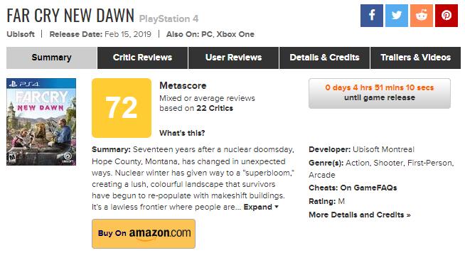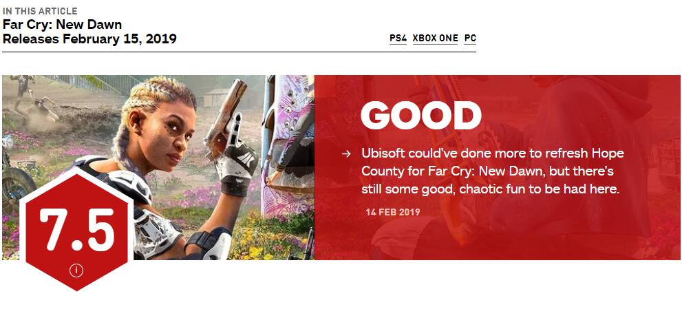 《孤岛惊魂:新曙光》全球媒体评分解禁!IGN7.5分 GameSpot 6分