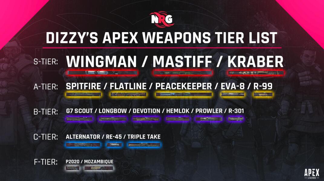 《Apex英雄》中击杀数世界排名第一的大神Dizzy给出了自己的枪械评级排名。其中S级别的枪械有三把,除了獒犬霰弹枪以及克雷贝尔狙击步枪这两把金枪外,还有一把比较常见的辅助手枪(小帮手)也被归为了S级,这把枪在威力和准确度方面有着非常不错的表现,无论在近距离还是远距离都有着良好的适应性,不过较少的载弹量对于使用者的枪法也是一种考验。此外,排名比较高的还有喷火轻机枪、和平行者霰弹枪等,完整排名请见配图。