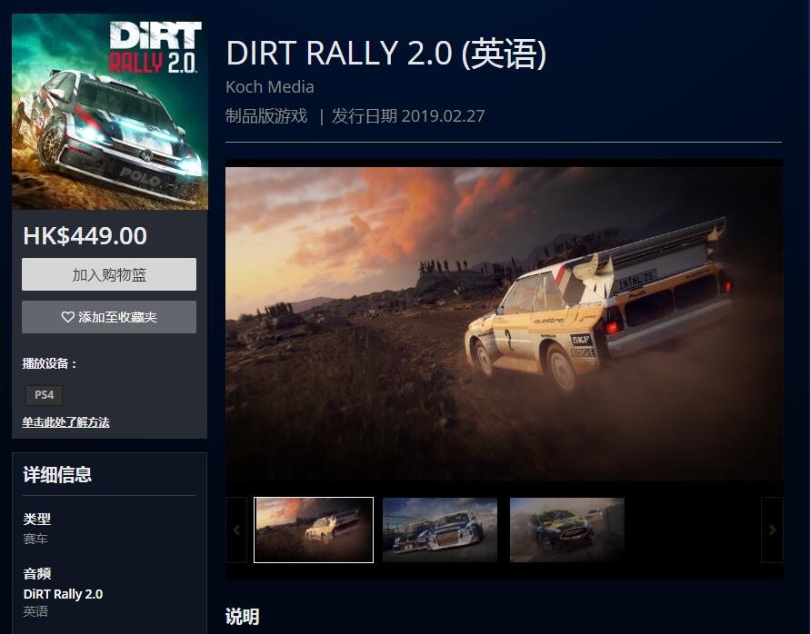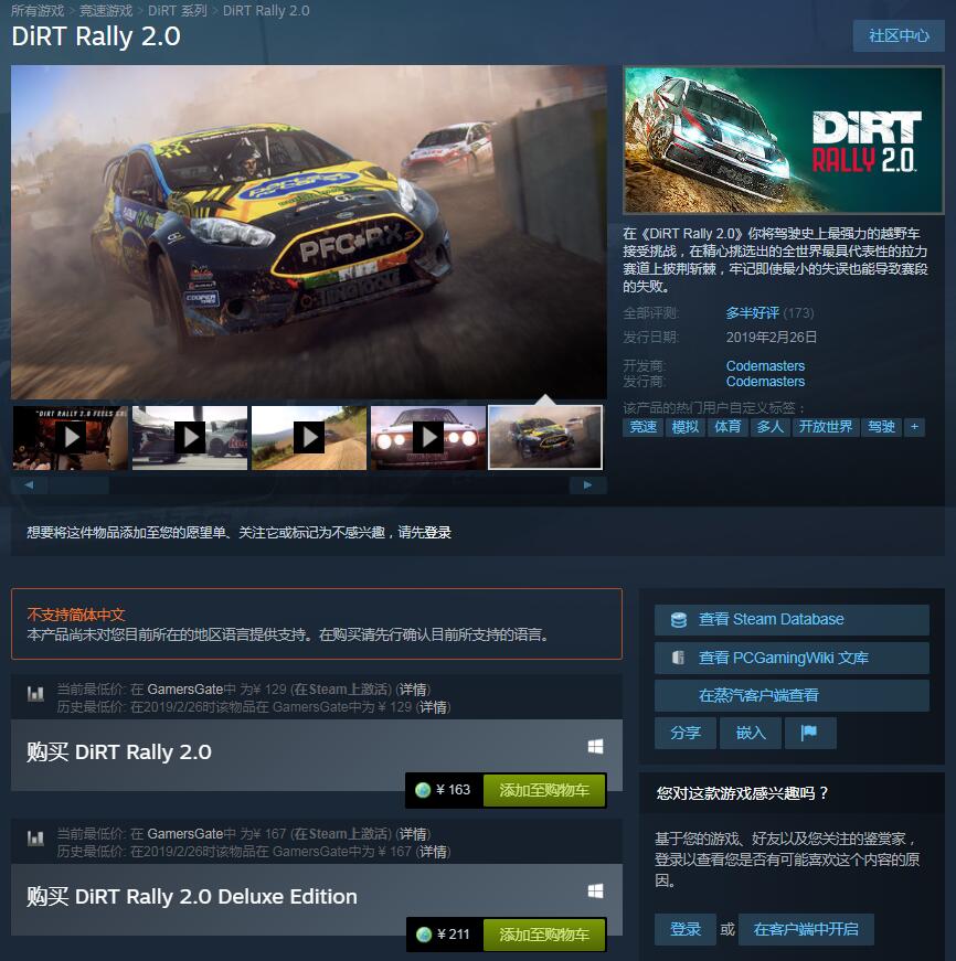 《尘埃拉力赛2.0》已经正式发售,而游戏也在今日上架了PS4、Xbox One及Steam平台。标准版游戏在PSN HK商店售价429港币,Xbox Store 429港币。Steam国区普通版163元,豪华版211元。IGN为本作给出了8.5分的良好评价,想要体验尘土上飞驰快感的玩家赶紧行动啦。