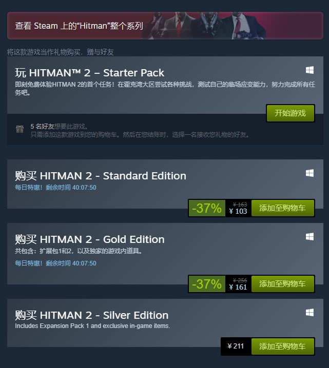 《杀手2》全新新手试玩版,Steam折扣仅售103元