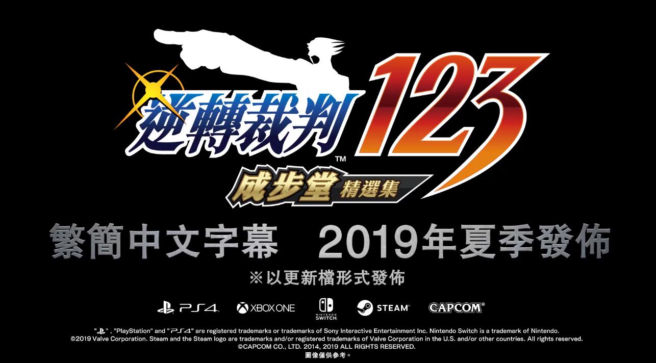 Capcom官方确认,已经发售的《逆转裁判 123 成步堂精选集》日文版届时也会在2019年夏季以更新包形式追加更新中文字幕。