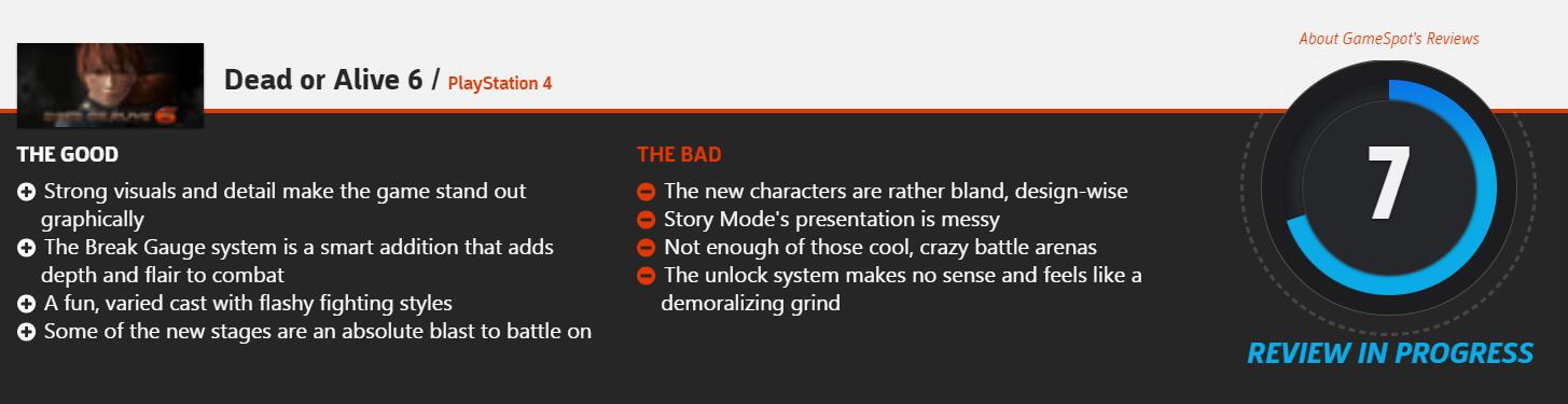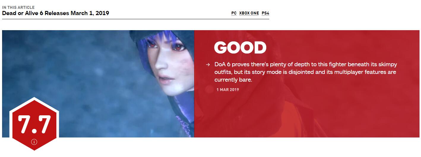 《死或生6》获IGN 7.7分,GameSpot 7分评价:战斗深度有所加强,单人战役有待打磨