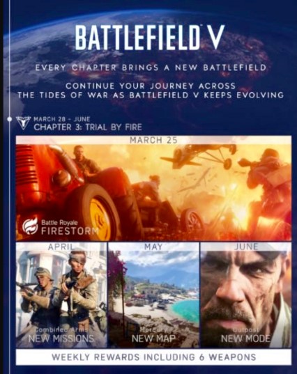 今天,DICE公开了《战地V》的一系列后续更新内容,这些内容中,马上就要开始更新的第三章标题为火之考验,包含了大逃杀模式“火焰风暴”,新合作任务、新地图“水星”以及新模式“警戒部队”。接下来的第四章将从6月份开始更新,标题为“蔑视艰难”,包含新模式和两张新地图,一张名为“玛丽塔”,将带领玩家领略战时的希腊风光,另一张则是暂未公开的城市格局战斗地图。从秋季开始更新的第五章主题则是“唤醒巨人”,这一部分则暂时没有详细的模式或者地图更新说明放出。