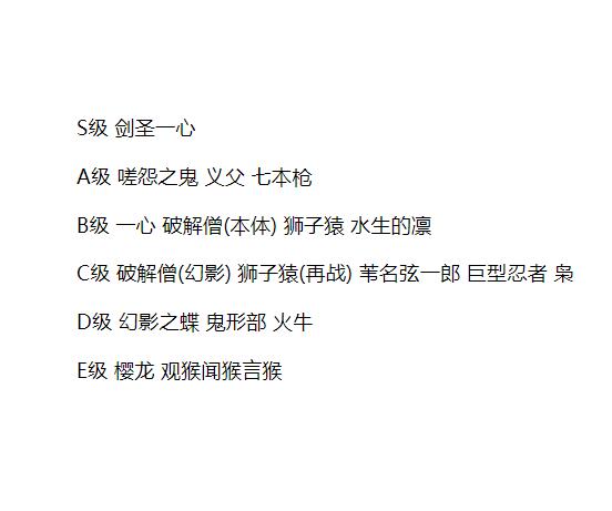 【剧透提醒】日本Psneolog论坛近日就《只狼》中的BOSS难度发起了调查。根据调查结果,“剑圣 一心”当仁不让地排在S级别的BOSS之列,A级的有“嗟怨之鬼”,B级的有“狮子猿”,C级的有“苇名弦一郎”,D级的有“幻影之蝶”,“樱龙”和“观猴闻猴言猴”则排在最弱BOSS的行列。你同意这份排名吗?你心目中最强和最弱的BOSS分别是谁呢?(完整排名详见配图)