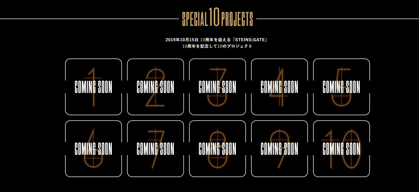 #更新(5月29日)# 5pb.宣布将在今晚9点公布首个《命运石之门》全新企划的详情! #原文(4月2日)#《命运石之门》10周年纪念官网现已正式上线!《命运石之门》系列将在2019年10月15日迎来10周年纪念;并且为了纪念10周年,官方还公布了10个全新企划,预计将在未来陆续揭晓。