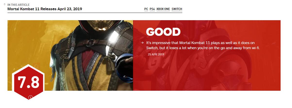 IGN为NS版《真人快打11》给出7.8分:出色的移植,但实时在线机制让人苦恼