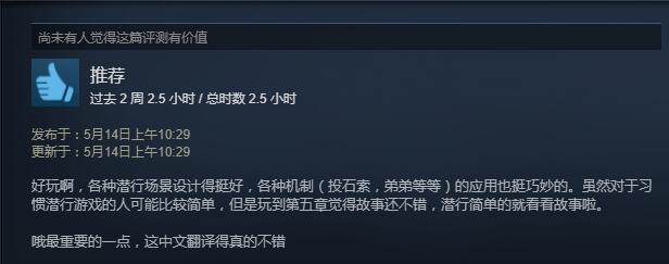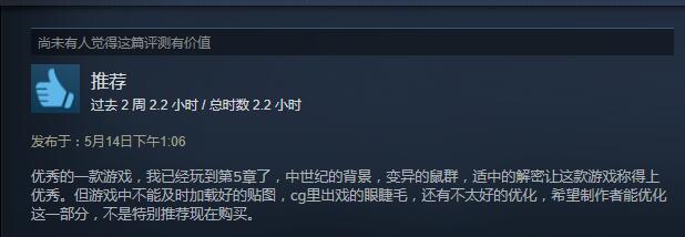 《瘟疫传说 无罪》已于今日凌晨正式在Steam平台解锁,目前游戏为“特别好评”,玩家好评率高达91%!从整体评价来看,沉浸式的优秀故事剧情体验获得了大部分玩家的好评,游戏的潜行玩法难度也比较适中,以至于能更好的融入游戏剧情;缺点方面,目前游戏在优化以及场景贴图加载部分有些BUG。