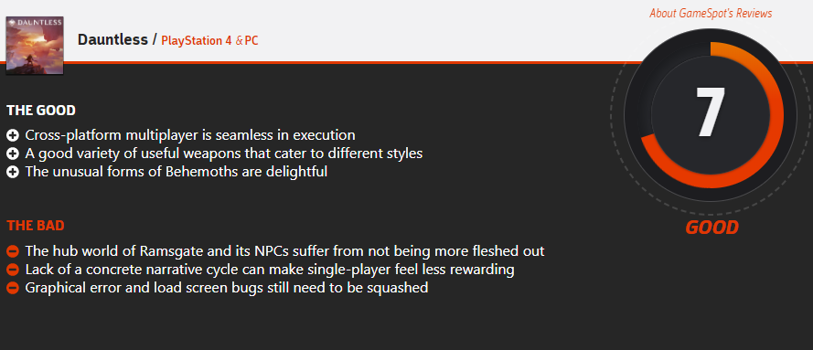 【Gamespot《无畏》评分7分:新鲜、有趣、方便】Gamespot今日为共斗游戏《无畏》打出了7分的良好评价。Gamespot认为,《无畏》跨平台的联机方式使多人游戏看起来十分方便;各种各样的武器足以支持各种不一样的战斗风格;形态各异的怪物也让玩家的游戏体验十分丰富。缺点是,游戏世界及NPC的表现力不够丰富,缺乏闭环的叙事体系使其对于单人玩家来说吸引了不是很足;一些加载页面和画画面上的小Bug仍然需要优化和修复。