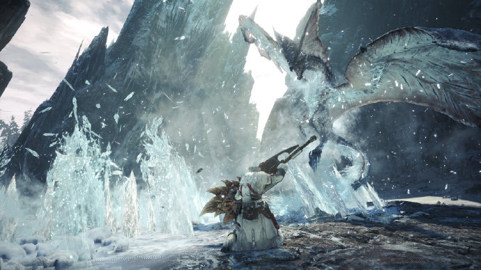 《怪物猎人世界 冰原》“轰龙”和“霜翼风漂龙”最新截图展示