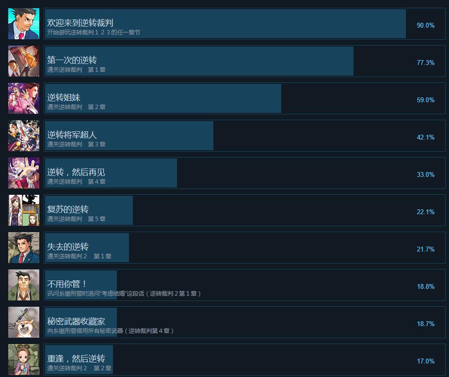 【Steam《逆转裁判合集》已添加成就中文语言选项,正式更新将在8月推送】Steam《逆转裁判 123 成步堂精选集》目前已经添加了成就的中文语言选项,正式的中文字幕更新将在8月推送,并且本次更新将包括PS4/Xbox One/Switch/PC所有平台。