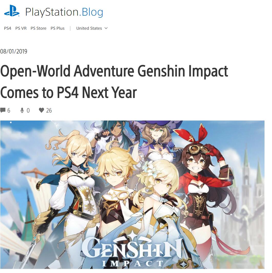 【PS4《原神》将于2020年登陆欧美/日本市场】在昨天举办的PlayStation ChinaJoy发布会上,《原神》确认将于2020年登陆PS4平台,游戏将针对PS4平台进行游戏性能优化,并为PlayStation玩家提供独占内容。 而随后PlayStation US/JP的官方博客也介绍了《原神》这款游戏,并确认PS4版《原神》将会在2020年登陆欧美/日本市场。