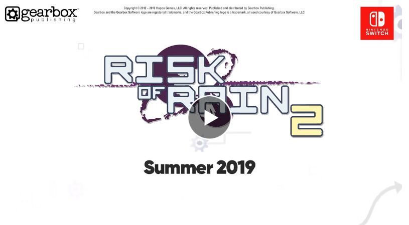 【《雨中冒险2》登陆Switch平台】风靡全球的多人动作冒险游戏《雨中冒险2》宣布登陆Switch平台,游戏将于2019年夏季发售。 《雨中冒险2》是一款地牢探索类的多人游戏,游戏采用3D化视角,武器系统丰富,怪物种类繁多,操作手感顺畅,玩家将和其他三名队友组队,在广袤多变的星球上探索,最终逃离这颗星球。游戏自发售以来就在Steam上获得了广泛好评,仅一个月时间销量就突破了100万份,而游戏也在近期添加了官方中文支持。