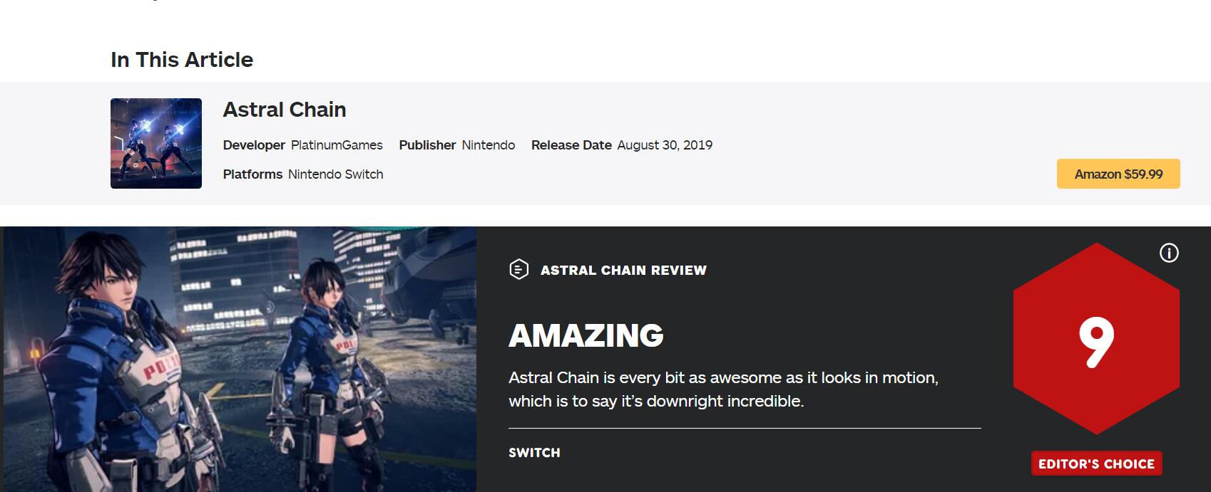 【《异界锁链》评分详情】IGN为白金工作室新作《异界锁链》给出了9分的高度评价。IGN认为这是又一款白金工作室的杰作,而且可以说是本世代最优秀的动作游戏之一。和机器人伙伴一起击退异形侵略者玩起来要比看起来有意思的多。即使是在战斗之外的部分,游戏世界和游戏角色也非常生动形象(除了主角以外)。游戏节奏紧张刺激,和探索内容一起提供了一场令人满意且充满魅力的游戏体验。