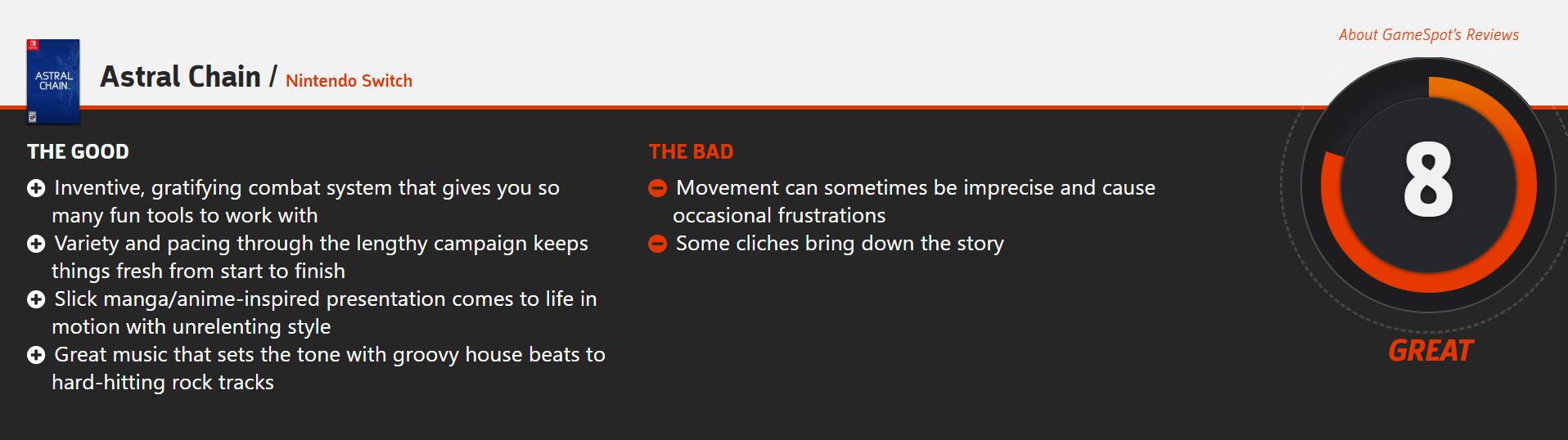 Gamespot为《异界锁链》打出了8分的不错评价。Gamespot认为,《异界锁链》的战斗系统颇具创造性,为玩家提供了许多有趣的机制;多样性与节奏感并存的战役让整个游戏从开始到结束都新鲜感十足;动画/漫画风格的交替演绎让游戏栩栩如生,摇滚风格的配乐也颇有味道。不足之处在于,移动系统有时不太精准,让人沮丧,并且剧情中存在着一些老套的故事。