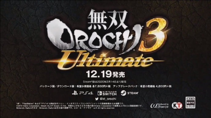Koei Tecmo在今天的TGS活动上宣布,《无双大蛇3 终极版》PS4、Switch平台将于2019年12月19日发售!