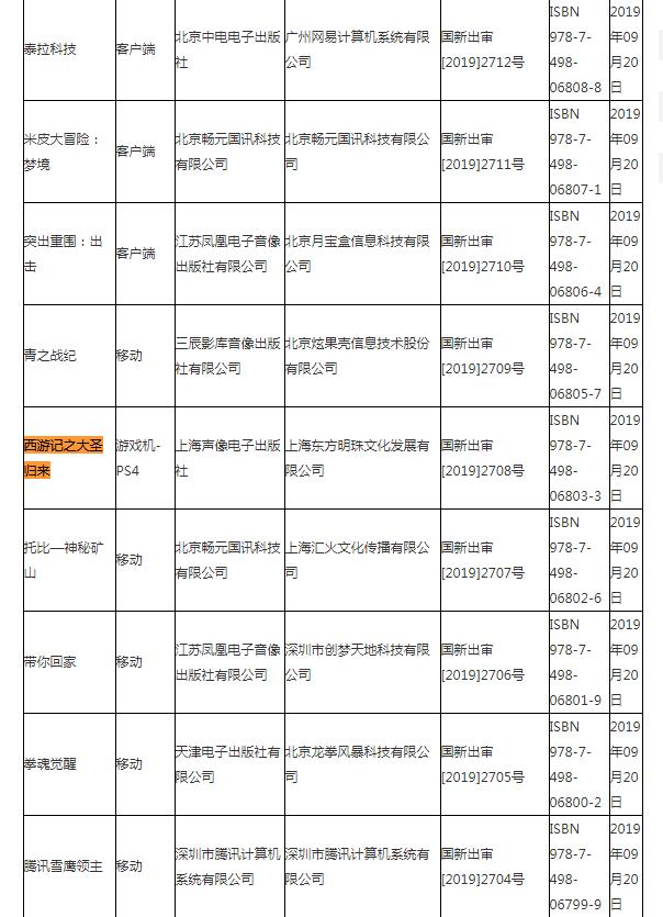 【新一批游戏版号出炉,《西游记之大圣归来》过审】国家新闻出版广电总局公布了新一批过审的游戏版号,其中PS4《西游记之大圣归来》已经通过审核,游戏将于10月17日登陆PS4及PC平台。