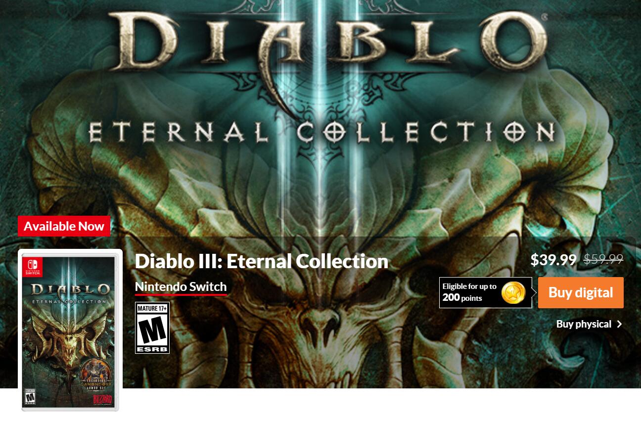 Switch《暗黑破坏神3》6.7折特惠,原价59.99美元优惠价39.99美元
