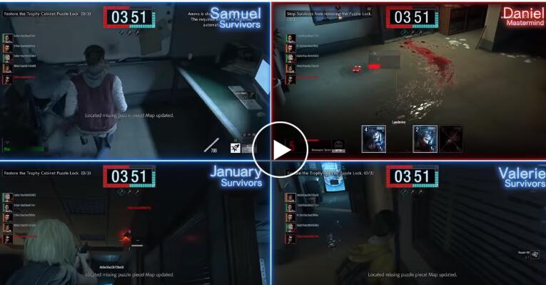 【《抵抗计划》10分钟实机演示:斗智斗勇,密室逃生】今日Capcom公布了一段《抵抗计划》的10分钟实机演示,用分屏的形式展示了游戏中的非对称对抗玩法。在游戏中,生存者获胜需要经过重重考验,每一个关卡都有时间限制。生存者方必须通力合作,在时间走完之前找到并拼接好解锁出口的钥匙或者其他通关必要道具。所有人走出当前区域即可过关,而单独作战的“Mastermind”需要尽力干扰和拖延生存者们的时间,妨碍他们获得通关道具并顺利逃脱。抵抗计划将在北京时间10月4日15:00-10月7日15:00开启Beta测试。