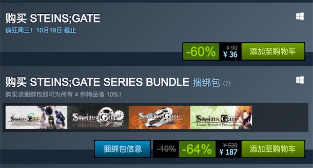 纪念系列十周年,《命运石之门》全系列Steam4折优惠开启