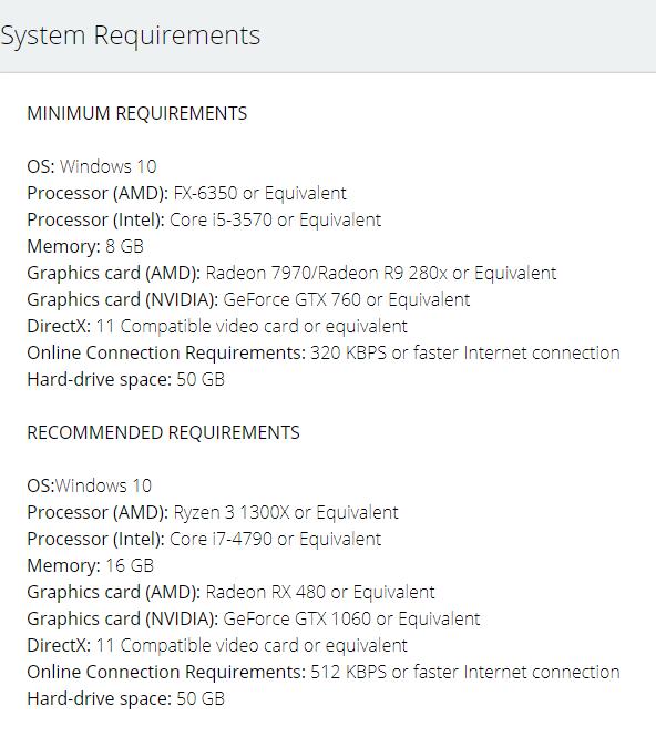 【《极品飞车:热度》PC配置需求】EA公布了《极品飞车:热度》的PC版配置需求。游戏的最低配置为i5-3570/FX-6350的CPU,加上Radeon 7970/GTX 760的显卡,内存要求为8GB。游戏的推荐配置为i7-4790/Ryzen 3 1300X的CPU,加上RX 480/GTX 1060的显卡,内存要求为16GB。游戏需要50G以上的储存空间。《极品飞车:热度》将于11月8日登陆PS4、Xbox One和PC平台。