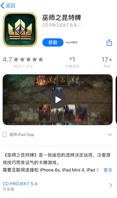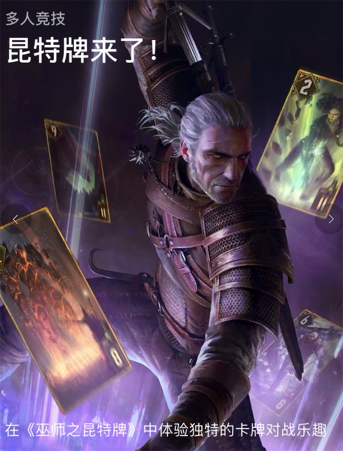 【《巫师之昆特牌】iOS版本正式上线】今日,CDPR卡牌游戏《巫师之昆特牌》已经正式在iOS平台上线,玩家即刻可以进行下载,大小约2.5GB。现在登陆游戏还可领取一份欢迎礼包。安卓版本预计将于2020年上线。