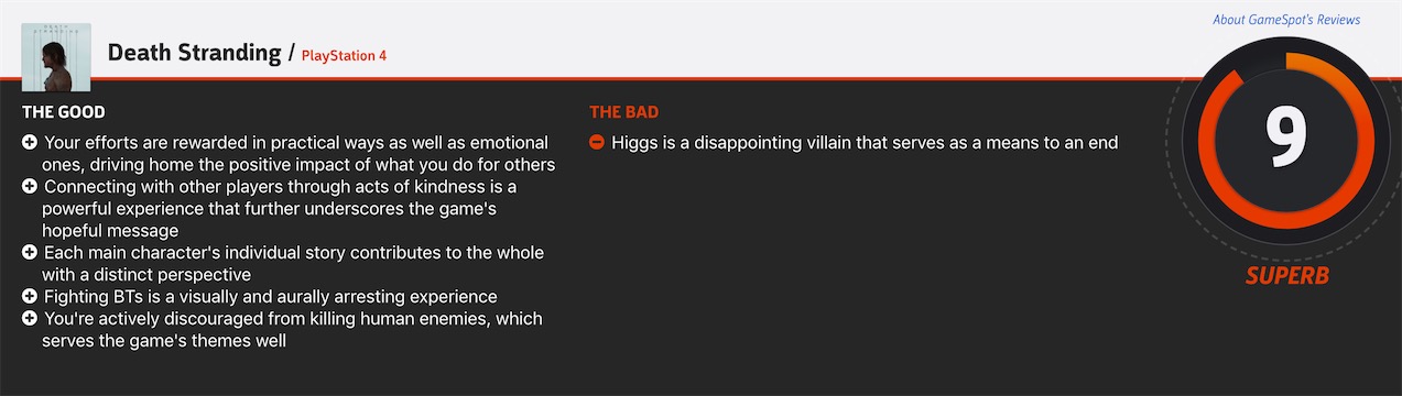 《死亡搁浅》GameSpot评价9分,看看他们怎么说