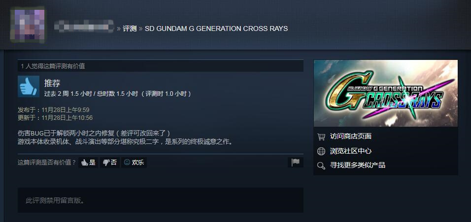 Steam《SD高达G世纪:火线纵横》首日获“特别差评”,一枪一个变“互秒”游戏