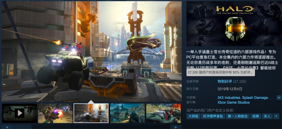 【《光环:士官长合集》Steam版已售出近200万份】根据SteamDB数据显示,Steam版《光环:士官长合集》目前已经售出接近200万份,游戏正式发售仅仅过了两天的时间就达到了这一数字,这无疑令人惊叹。率先推出的第一款作品:《光环:致远星》的最高同时在线人数达到了161024人,这一数字在当天也仅次于《DOTA2》和《CSGO》,排名Steam同时在线榜的第三位。目前,游戏在Steam商店的好评率为92%,好评主要集中在赞叹游戏良心的性价比和出色的手感。Steam平台《光环:士官长合集》以《光环:致远星》首发,并将以2020年推出的《光环4》收官。
