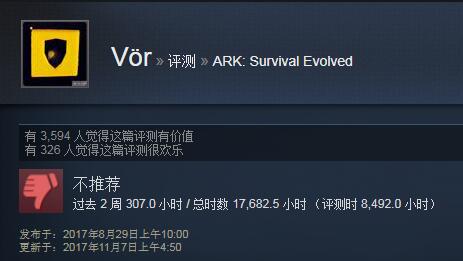 Steam上的一位老哥,在玩了《方舟:生存进化》8,492个小时之后给了游戏一个差评,接着他又玩了9,190个小时,总时长达到了17,682个小时。这大约等于你不吃不喝不睡玩上两年。就算你把他当成工作,一天玩8个小时,也需要大约9年的时间。人有时候真的是很神奇的动物...你有没有这种“真香”时刻呢?