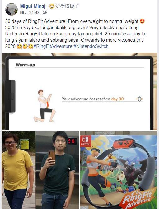 《健身环大冒险》推出后备受关注,在经历缺货和涨价后,大家都在问它真的能锻炼身体减肥吗?对此一位国外玩家晒出了玩《健身环大冒险》前后的体型对比图。这位名为Migui Minaj的Facebook用户表示,每天玩25分钟,玩了30天后,感觉效果非常不错。此外他还提示除了坚持玩《健身环大冒险》外,还要搭配科学饮食才能有这个效果。