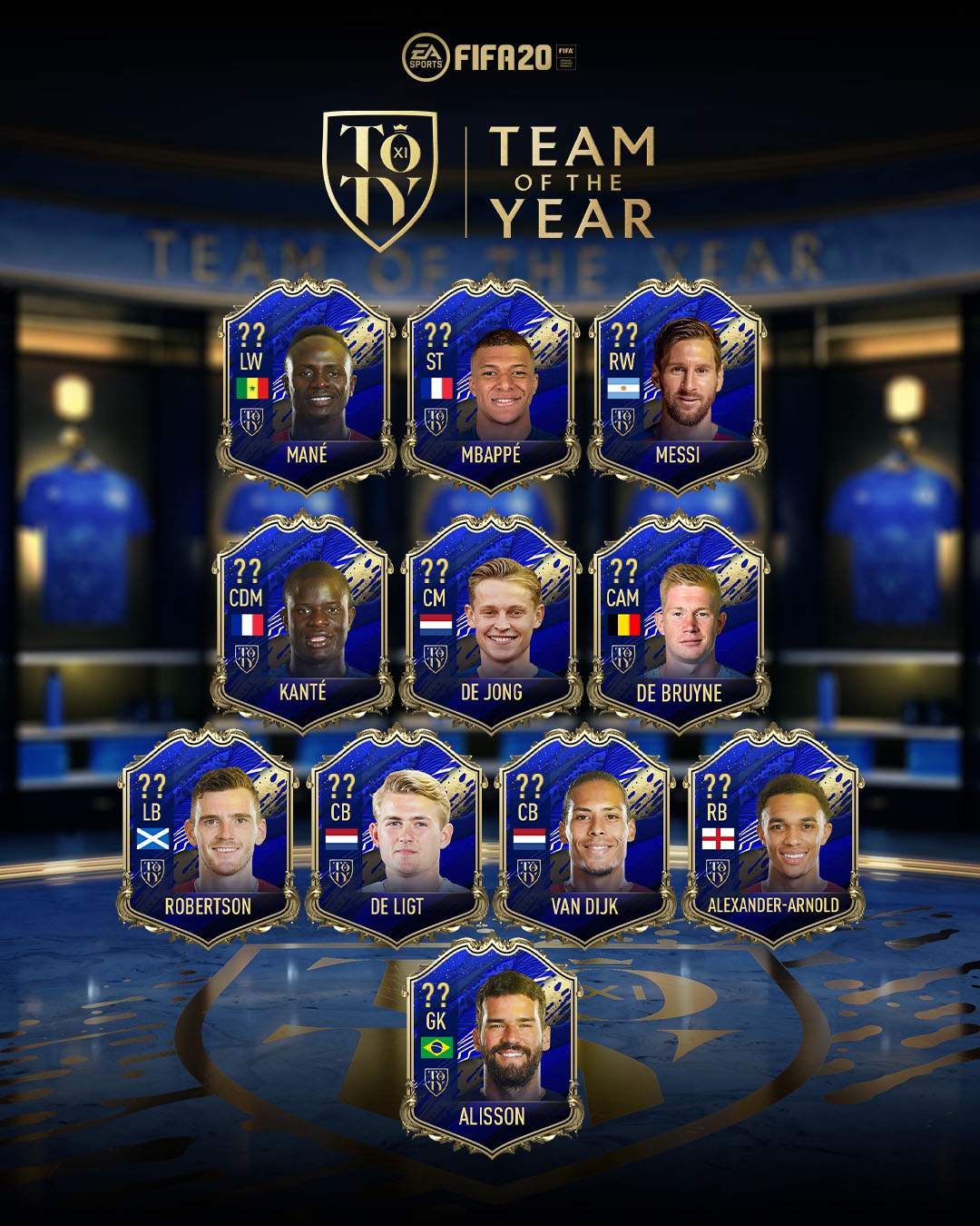《FIFA 20》“年度蓝”最佳阵容出炉,C罗落选,荷兰3人入围