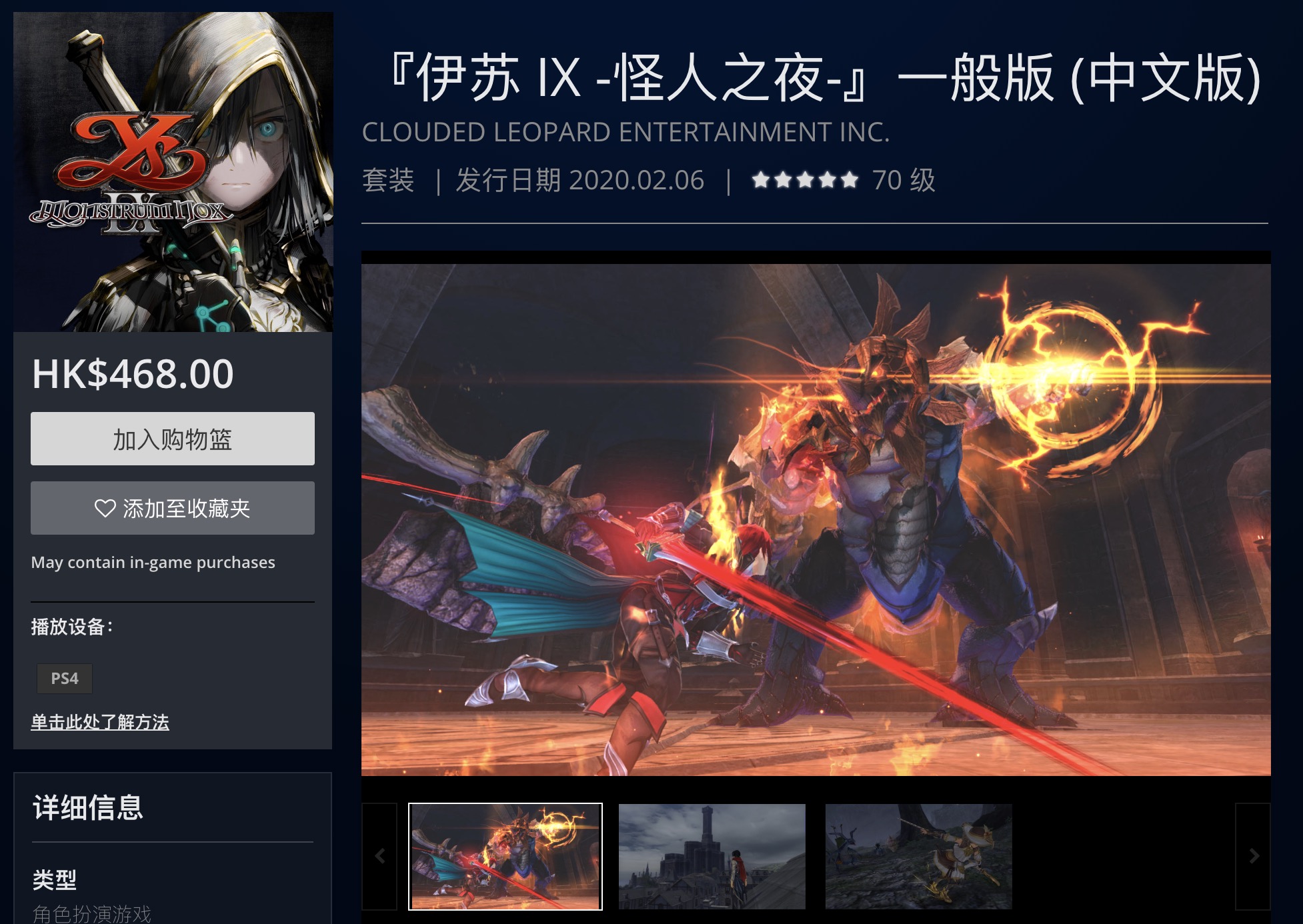 PSN HK上架《伊苏9:怪人之夜》中文版