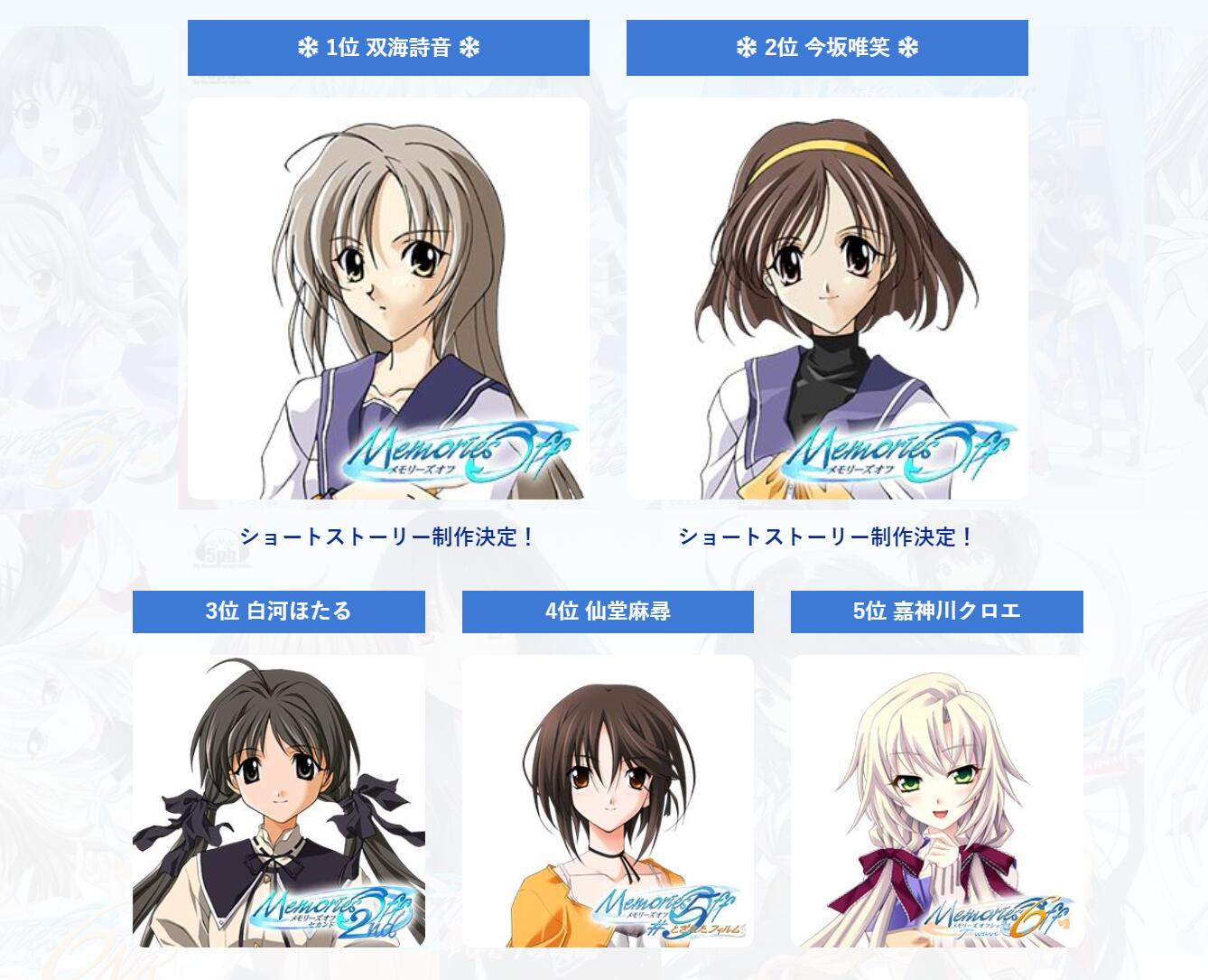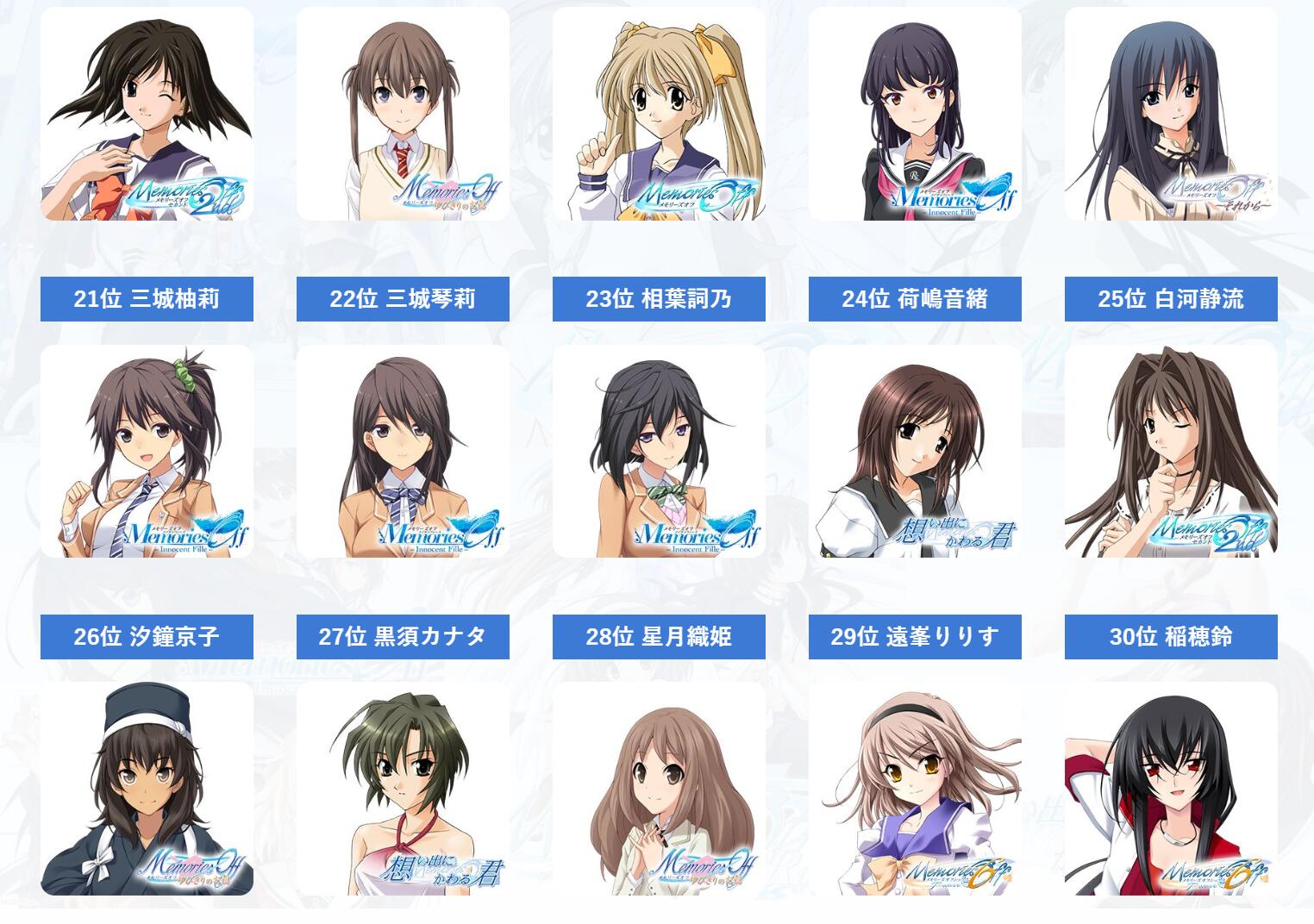 《秋之回忆》系列人气女性角色投票结果公布