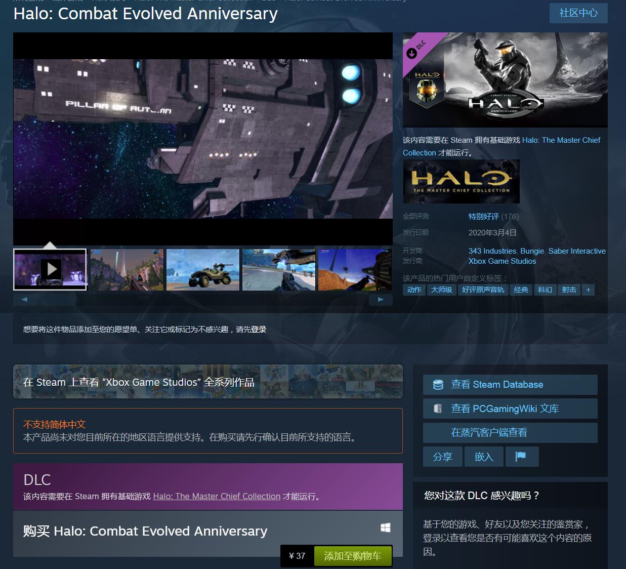 【《光环:战斗进化》现已登陆Steam】《光环:战斗进化》周年纪念版已于今日正式登陆Steam平台,这是继《光环:致远星》之后,第二部加入《光环:士官长合集》的作品。游戏目前的售价为37元,暂不支持中文,好评率为91%。本作针对PC平台进行了操作上的优化,画面上支持4K和60帧,已经购买了《士官长合集》的玩家可以直接下载。