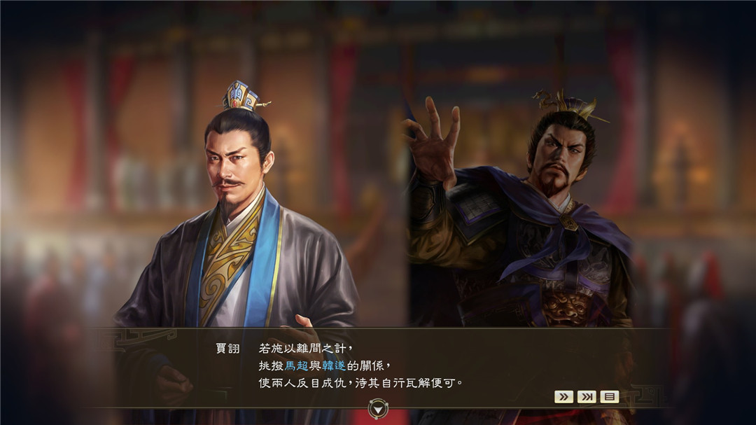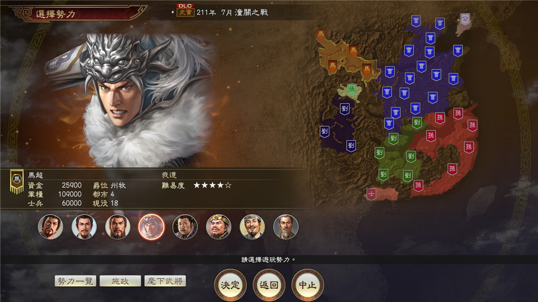 剧本“潼关之战”:在该剧本中,此时刘备在荆南稳固实力,马超进军曹操。本剧本中含全新事件,让马超与曹操的战斗、刘备入蜀等故事更加多彩。