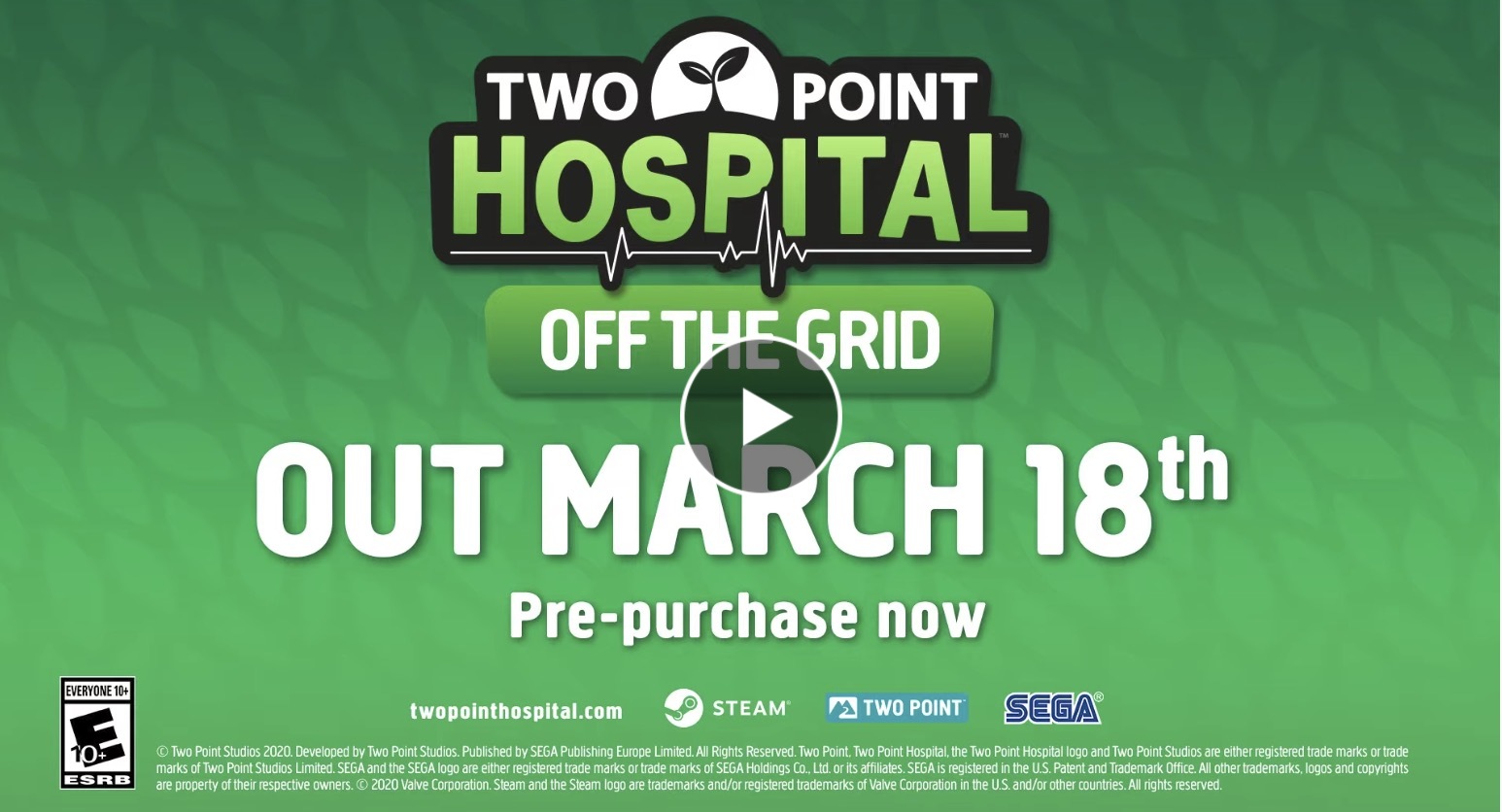 【《双点医院》公布新DLC“走出网格”预告片,绿色节能开医院】《双点医院》今日公布了全新DLC“走出网格”的预告片。新DLC将带来三个全新地区以及35种新疾病。你将在温莎克市建立一家医院,但是你需要使用绿色能源机器来保证医院的能源供给和正常运转。新DLC售价8.99美元,将于3月18日在Steam平台发售,在3月25日前购买可享受10%的优惠。