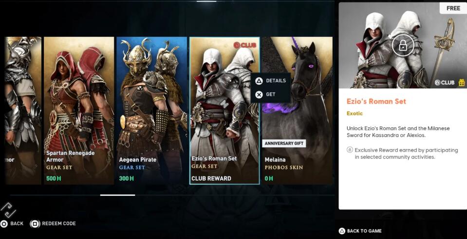 【《刺客信条 奥德赛》推送1.5.3版本更新,新增“艾吉奥套装”】育碧目前已为《刺客信条 奥德赛》推送了1.5.3版本更新,除了修复游戏BUG之外,此次还加入了“艾吉奥套装”!玩家已可以在育碧Club看到“艾吉奥罗马组合”和“米兰剑”的页面,不过育碧还尚未带来如何解锁获得该套装的具体介绍。