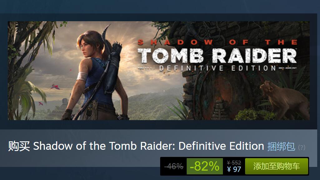 Steam《古墓丽影暗影 终极版》推出超大力度优惠,仅售97元