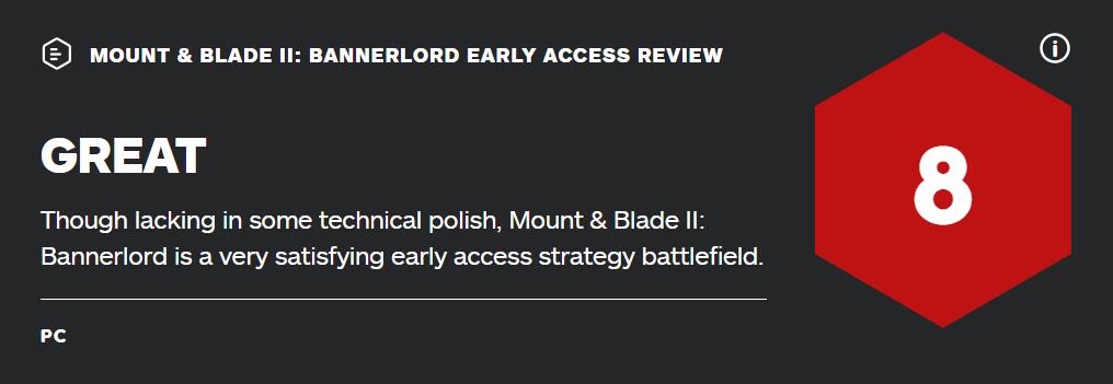 《骑马与砍杀2》EA版获IGN 8分评价:游戏本身内容丰富,未来还需逐步完善
