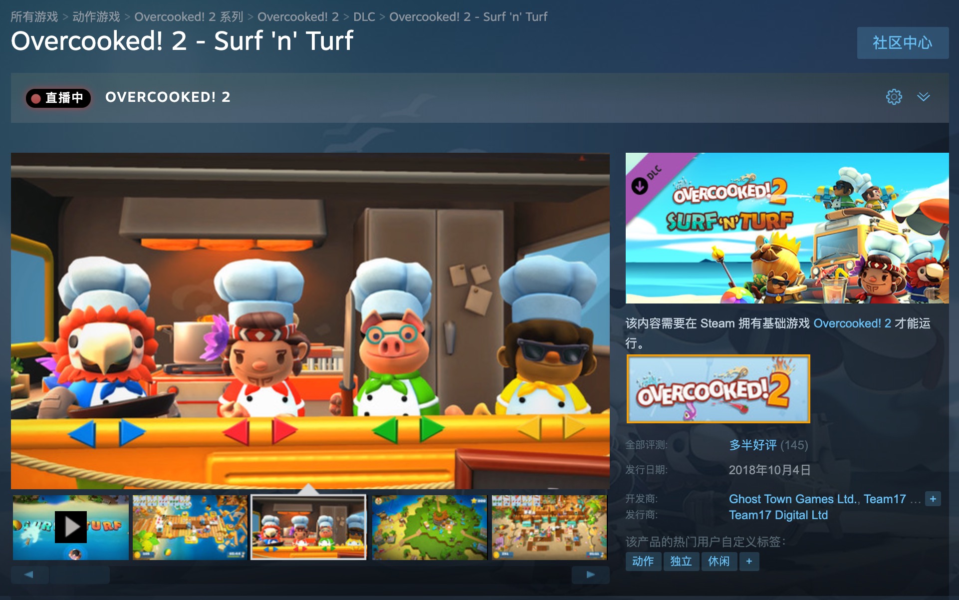 【Steam《胡闹厨房2》两款DLC现可免费领取】Steam版《胡闹厨房2》现已开放两款DLC“Surf 'n' Turf”和“Too Many Cooks Pack”的免费领取活动,拥有游戏本体的玩家即可免费领取。领取时间截止至4月22日。这也是《胡闹厨房2》最早推出的两款DLC,目前两款DLC的Steam评价分别为“多半好评”和“特别好评”。